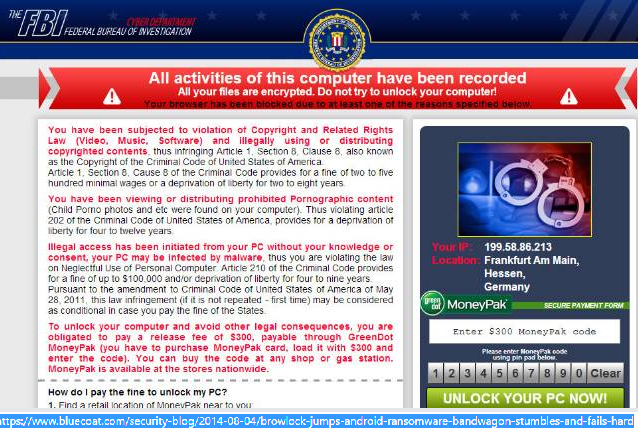Have you ever landed on a website from which you can’t seem to get out? You then get a message something like the image shown here. Welcome to Browlock and other similar scareware – a form of malware – that locks your browser until you pay a fine/ransom.