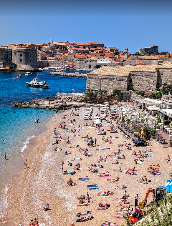 Banje Beach, just a short walk from my hotel, was packed with sunbathers enjoying the clear blue waters. The view perhaps made up for the not-so-warm weather.